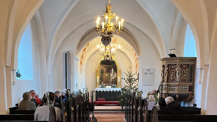 MORGENANDAGT: Sidste Morgenandagt i 2025 blev afholdt med en gudstjeneste i kirken, hvorefter der var kaffe og kage i Kirkeladen.
