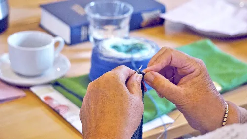 Der strikkes, udveksles opskrifter og hygges i gruppen. En god højskolesang indleder mødet, og der afsluttes også med en højskolesang. Der er plads til pjat og alvor, og netværk skabes på kryds og tværs af gruppen